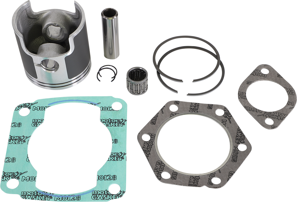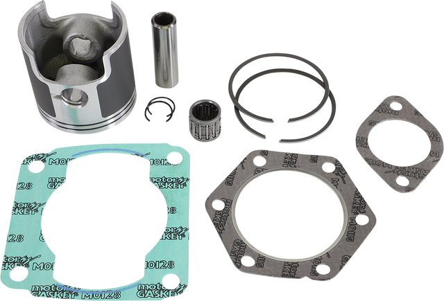 • Include pistons, rings, pins, clips, racing needle bearings, head and base gaskets, intake and exhaust gaskets