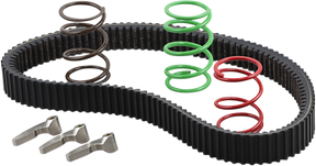 - Kit includes belts, springs, and weights