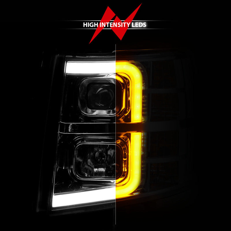 ANZO 2007-2013 Chevrolet Silverado 1500 Projector w/ Light Bar Chrome Housing w/ Sequential 111546