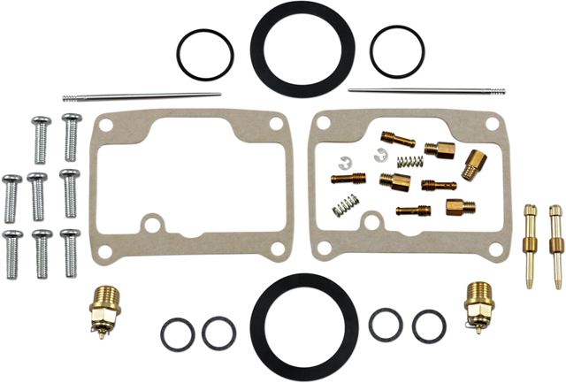 - Kit includes all necessary O-rings, gaskets, jets, needle, mixture screw, float bowl screws, float valve needle and seat (needle jet and other pressed-in jets are not included in kit)
