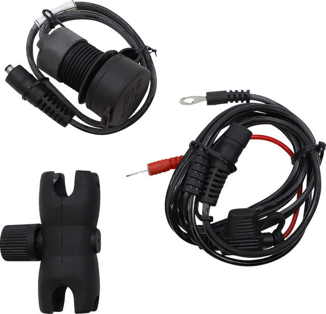 - Stylish looking handlebar mount comes with 5 volt/2 Amp dual USB ports, 1" ball attachment (for attaching RAM mount accessories) and water-resistant safety cap with built-in switch
