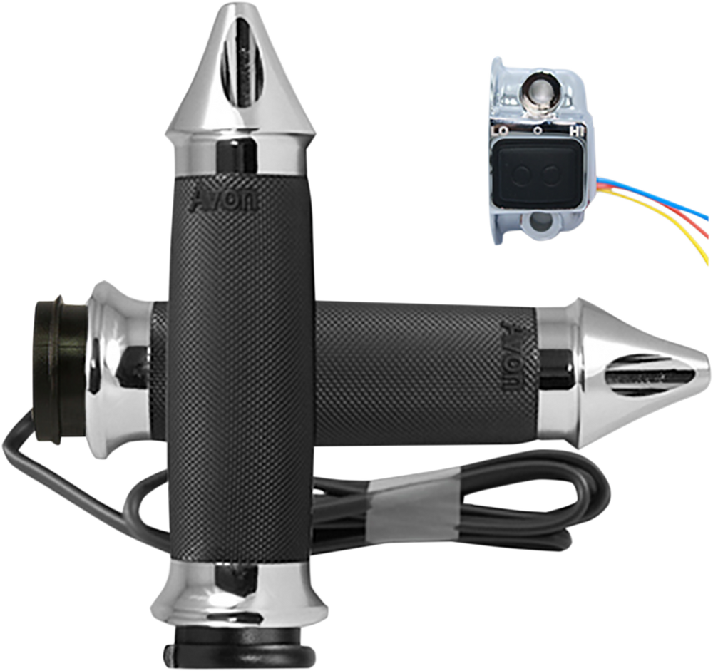 AVON GRIPS Grips - Heated - Custom Contour - Spike - TBW - Chrome CC-85-CH-S-F-HT