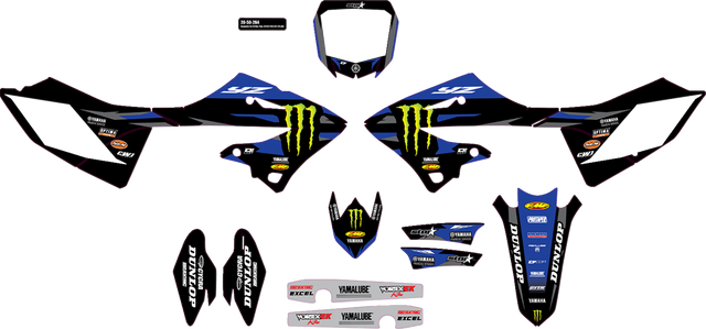 - Includes decals for radiator shrouds, tank, number plate, airbox, lower fork guards, front fender, rear fender and swingarm