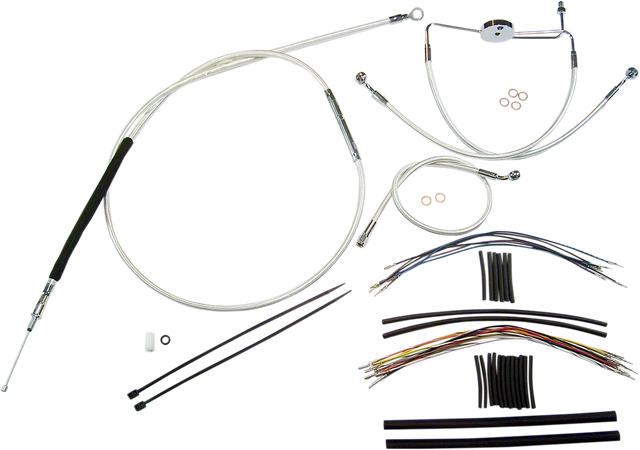 - Kit includes throttle and idle cables of throttle-by-wire extensions, clutch cable or hydraulic clutch line, brake lines, copper crush washers, hardware, and any necessary switch wiring of turn signal extension