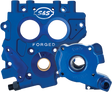Precision CNC machined forged aluminum Increased structural strength Dimensional stability Freedom for internal porosity Separate scavenge sections for flywheel cavity and cam chest scavenge each area more efficiently with no interference Gerotors are designed to tolerate more pinion shaft runout without damage Cam chest pic up features a magnetic trap to protect scavenge rotors from metal debris Both scavenge rotors are protected from debris, the most common cause of stock oil pump failure Passage plugs are removable for service Bronze pinion shaft bushing in all models and bronze cam bushings in 07-15 style can be replaced Adjustable oil pressure regulator - adjust without removing plate from engine 99-06 cam support plate is designed to use late style hydraulic cam chain tensioners because stock spring-loaded tensioners used in 99-06 models don't adequately control the valve train at high rpm, especially with higher lift cams or performance valve springs Made in the U.S.A.