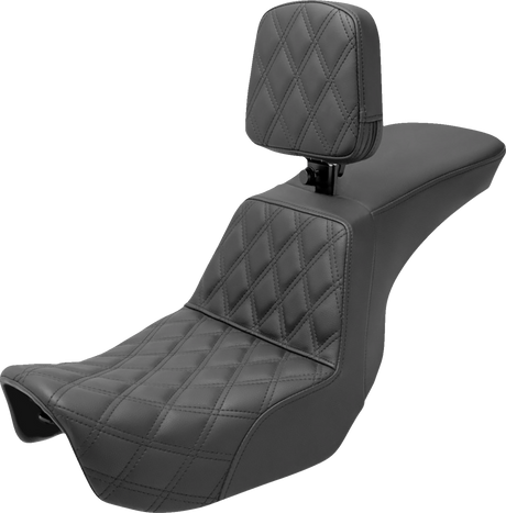 SADDLEMEN Step-Up Seat - Front Lattice Stitch - Black - Dyna 806-04-192