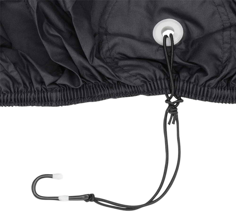 - Elastic hem and bungee cord for tie down