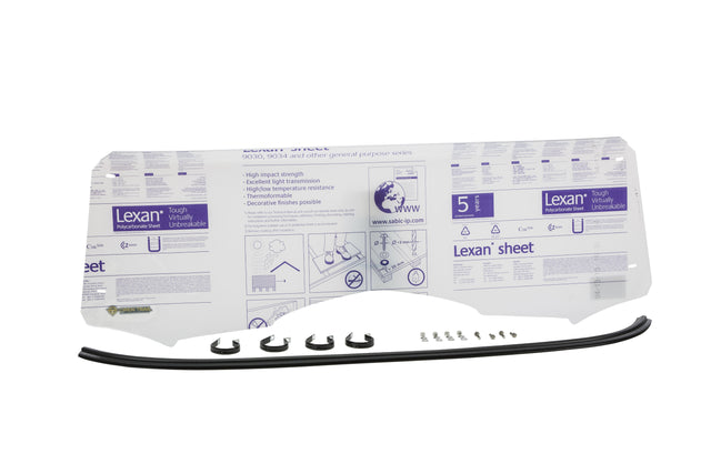 The Open Trail half windshield is made with ultra durable 0.177 Makrolon® Polycarbonate for long lasting, high strength protection and a clear view of the trail. This half windshield is 11 tall. The windshield has a seal at the bottom that rests against your vehicle. It is attached to your roll bars using four galvanized steel, rubber coated P clamps that are bolted to the windshield through pre-drilled holes.