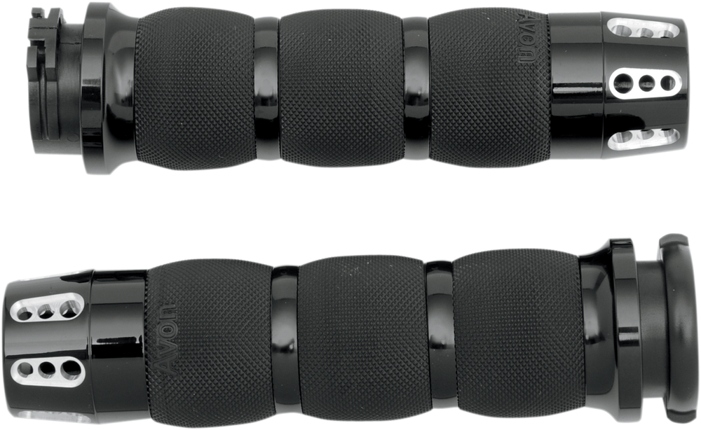 - Feature billet end caps and rings with ergonomic AVON seamless rubber grip technology