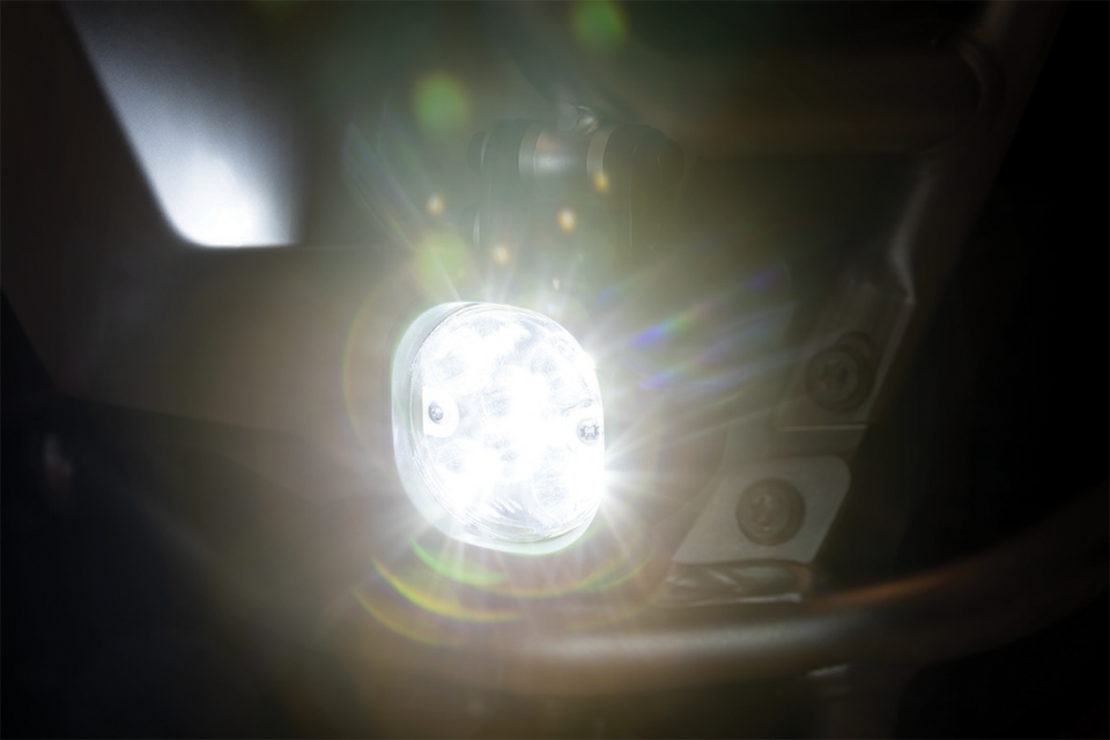 - Kit includes two lamps with sealed connectors and wiring pigtails, and integrated mount brackets with fasteners