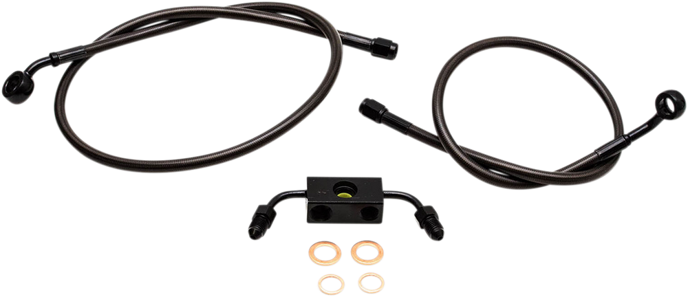 - Lines appear graphite or carbon fiber in appearance, providing that ultra custom look and the black fittings seamlessly blend with blacked out controls and covers on the bike