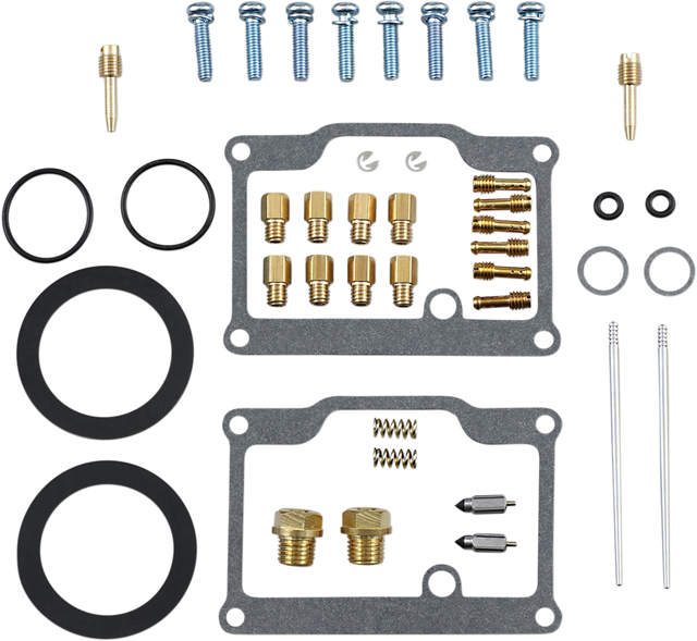 - Kit includes all necessary O-rings, gaskets, jets, needle, mixture screw, float bowl screws, float valve needle and seat (needle jet and other pressed-in jets are not included in kit)