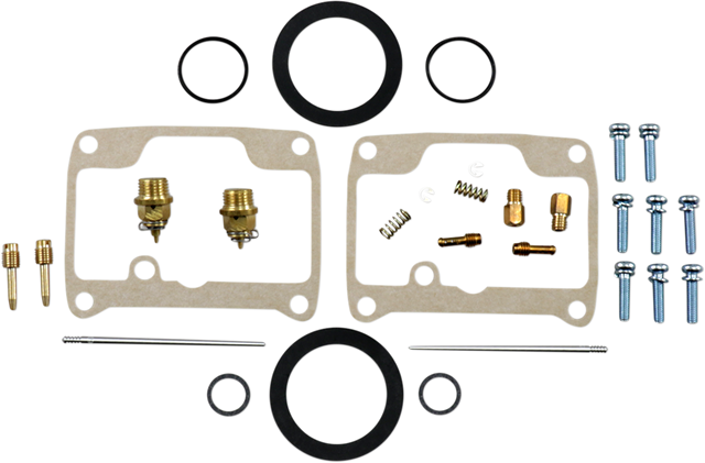 - Kit includes all necessary O-rings, gaskets, jets, needle, mixture screw, float bowl screws, float valve needle and seat (needle jet and other pressed-in jets are not included in kit)
