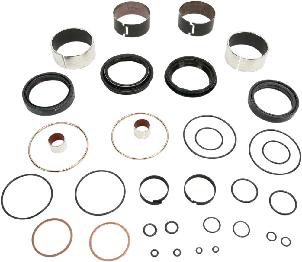 - Kits contain fork seals, wipers and upper and lower bushings
