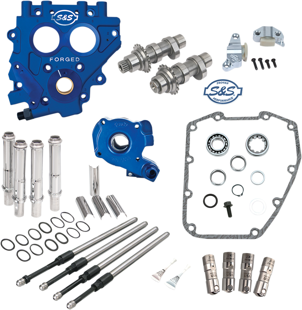 Upgrade to S&S bolt-in performance camshafts Improves engine performance - higher lift and optimized cam timing S&S Quickee pushrods - easy installation, without removing rocker covers Replaces stock oil pump, cam support plate, cams, chain tensioners, and tappets with all-new, premium U.S. made S&S components Gear-drive kits offer peace of mind - no more worries about cam chain failure Chain-drive kits include S&S Hydraulic Cam Chain Tensioners for improved valve timing and chain life Made in the U.S.A.