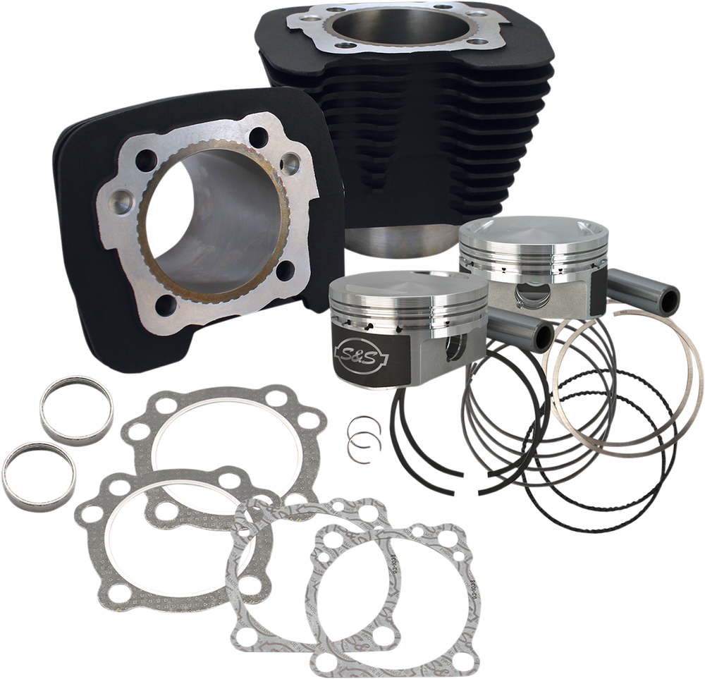 Forged pistons - coated piston skirts with measurement window and S&S logo Forged pistons have larger than stock valve pockets and accepts up to 2.00" valves Kit includes S&S 1250cc pistons with rings and wristpins, S&S 3-9/16" bore cylinders, MLS head, base and exhaust gaskets, assembly lube and instructions Made in the U.S.A. 883 models will require the use of XL1200 cylinder heads to achieve correct compression ratios.