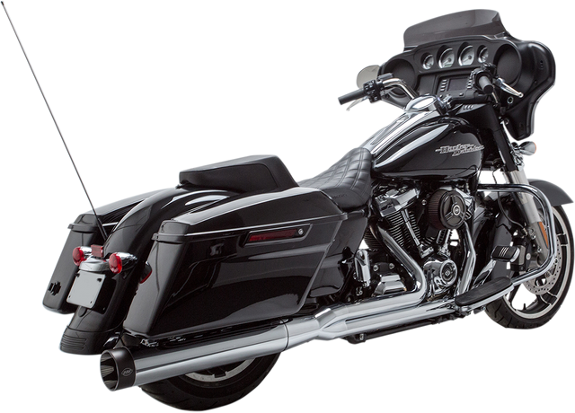 2:1 styling for high-performance Baggers with deep performance exhaust note Increased power and torque Machined aluminum end cap Stepped header construction Includes removable dB reducer and adapters that allow use of wide band or stock O2 sensors Made in the U.S.A. Not for Trike applications