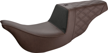SADDLEMEN Step-Up Seat - Front Tuck-n-Roll/Rear Lattice Stitch - Brown 897-07-176BR