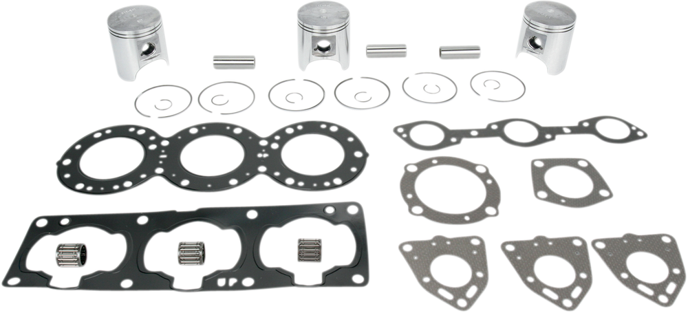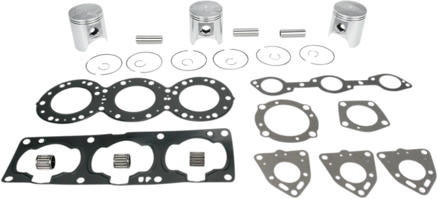 - Include pistons, rings, pins, clips, racing needle bearings, head and base gaskets, intake and exhaust gaskets