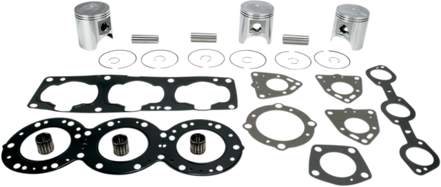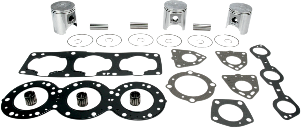 - Include pistons, rings, pins, clips, racing needle bearings, head and base gaskets, intake and exhaust gaskets
