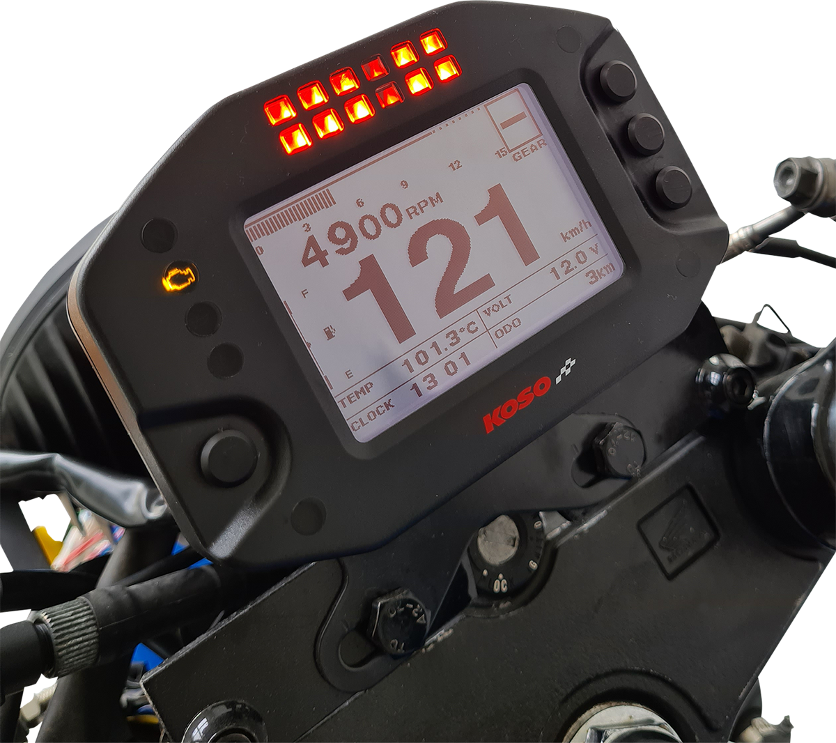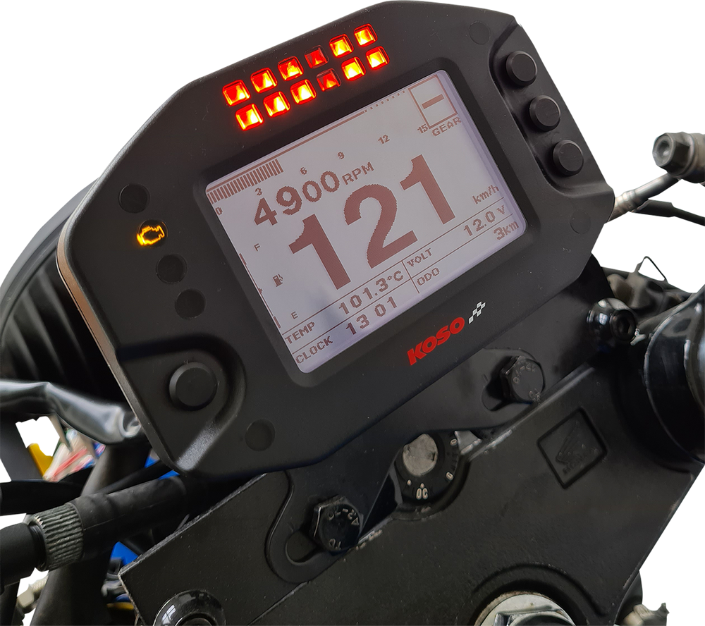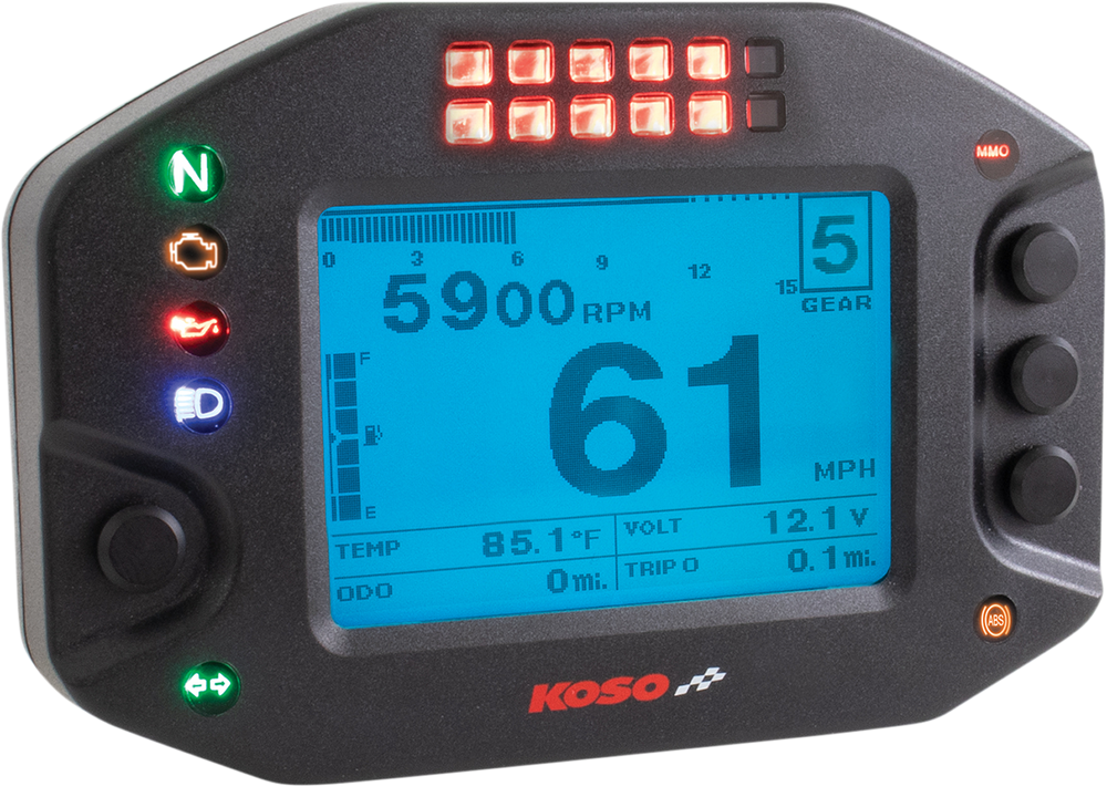 - Top of meter features a group of red LEDs to get the right shift point