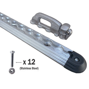 - 48" kit contains: one 48" length of Supertrac, a Supertrac deck hook, twelve pieces of stainless steel hardware and two end caps / screws